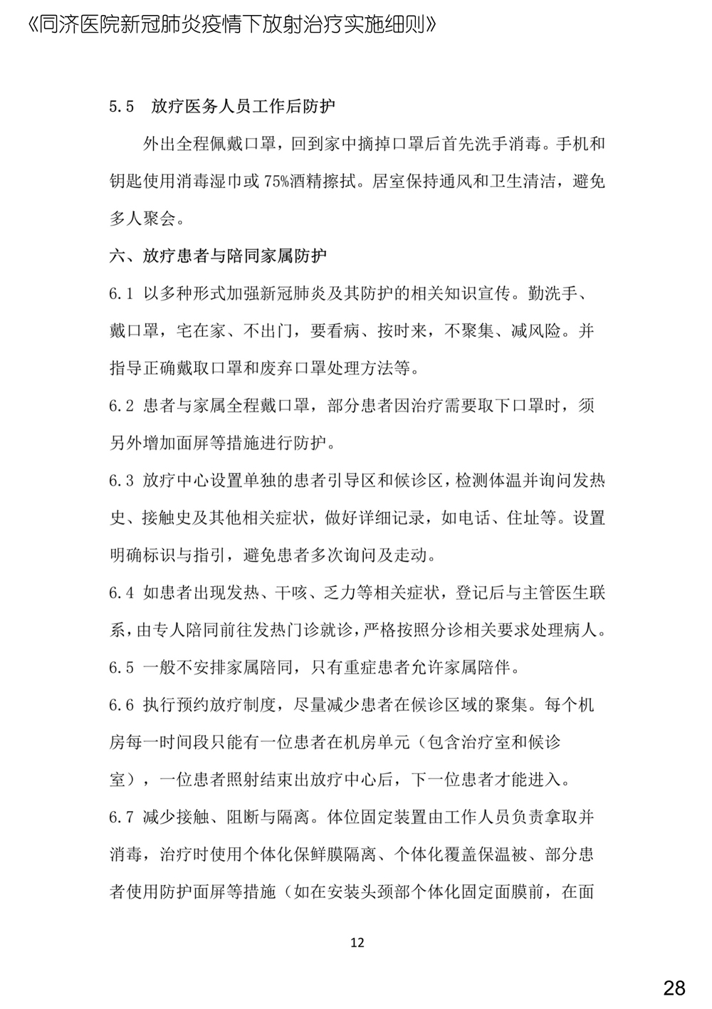 新冠疫情下可采用的更安全的放疗体位固定方案、存储方案、消毒指引等