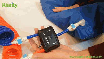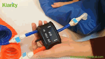 真空泵是使用真空袋摆位时用于抽气必不可少的工具(有的也可用于充气,如科莱瑞迪GM-05A型号无油真空泵)。由于真空泵放置位置一般与病人摆位的位置稍有距离,而且在摆位过程中重复的抽气和充气以做适当的调整是必不可少的。因此,使用真空袋可能稍显麻烦。对此,科莱瑞迪的工程师特别设计了一个小装置,这个小装置犹如给真空泵配备了一把遥控器,大大方便了治疗师的摆位操作。先通过一组动图来了解下这个小装置是如何让真空袋的塑形变得“一手掌握”的。